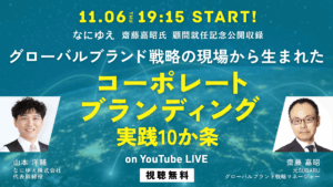 | 主なセミナー内容 | ・なぜイラストレーター出身の経営者が売上を8.8倍にできたのか? ・小さな会社のブランディングで重要な2つの視点とは? ・提供するサービスの意味が変わり企業価値が高まる「価値発掘ワーク」 ※内容は参加者の事前アンケートをもとにアレンジいたします。 ご参加者様にとって最大の効果をはかるために、メールにてお送りするアンケートにぜひお答えください。 |